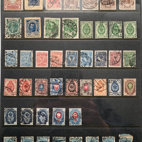 Pääosin hyväkuntoiset postimerkit, osa leikkeenä.