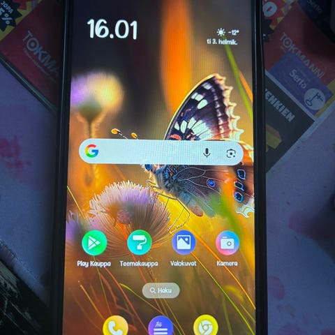 Näyttö: 6,56” LCD max 90 Hz, HD+ (1612 x 720), 720 nitin maksimikirkkaus