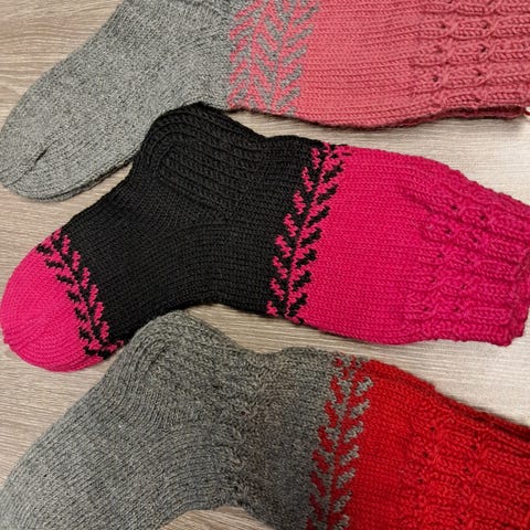 Uudet Käsin kudotut villasukat koossa 40-41. Vahvistettu kantapää. 75villaa ja 25polyamidia. Hinta 18e pari käteinen tai mobilepay. Nouto Karjalankadulta tai postitus. 😊