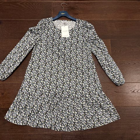 Myydään kesäinen kerran/kaksi kertaa käytetty mekko. Reilu 36 koko, joustava kangas, kapea nahkainen vyö.