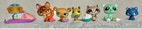 Petsejä tarvikkeineen. Kuvissa näkyy aika hyvin, jos joodenkin nokassa/nenässä kulumaa ym. Jokaisen petsin edessä/päällä/vieressä kyseiselle kuuluva/kuuluvat tavarat. Tarjoa!