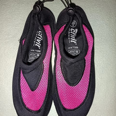 Käyttämättömät läpinäkyvät värittömät uinti/allas/rantakengät kokoa 38/39. Pienehkö koko.