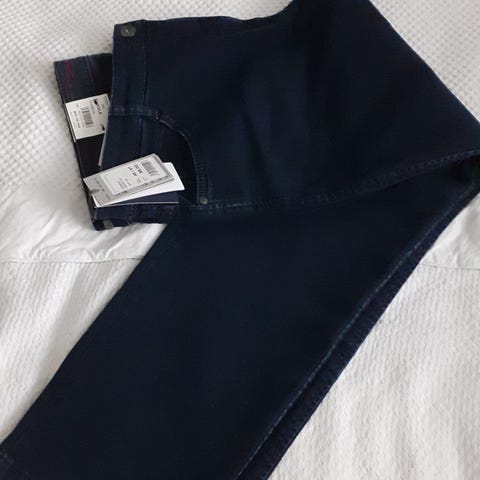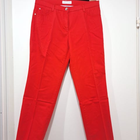 Hyväkuntoiset khakinväriset Brax-merkkiset housut, materiaali 97 % puuvilla, 3 % elastan. Ns. 5-taskumalli. Takataskuissa hillitty kuvio kuva). Vyölenkit. Koko 46.