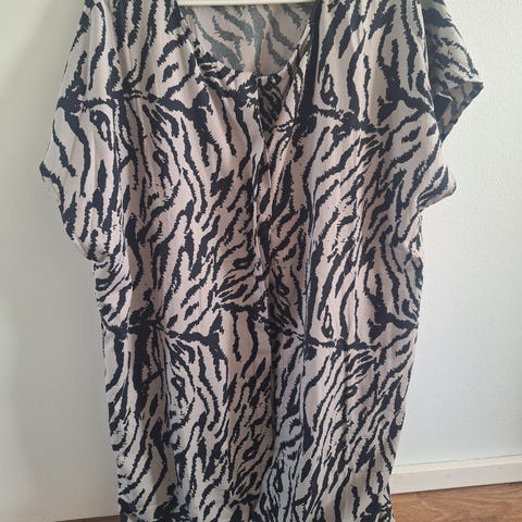 Kirjava tunika kukkakuosilla. Koko S-M, pituus 82cm ja kainaloleveys 54cm. Materiaali viskoosia. Siistissä kunnossa, ei moitittavaa.