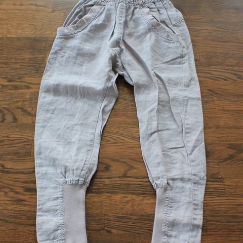 Myydään aivan ihanat kotimaiset Myllymuksujen valmistavat pellavahousut koossa 120. Väri pellava. Menee jo koon 116 kanssa.