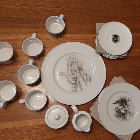 6kpl Rantakatu-kuvioisia kuppeja asetteineen, pro musica Oulu H.I.