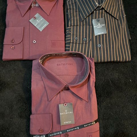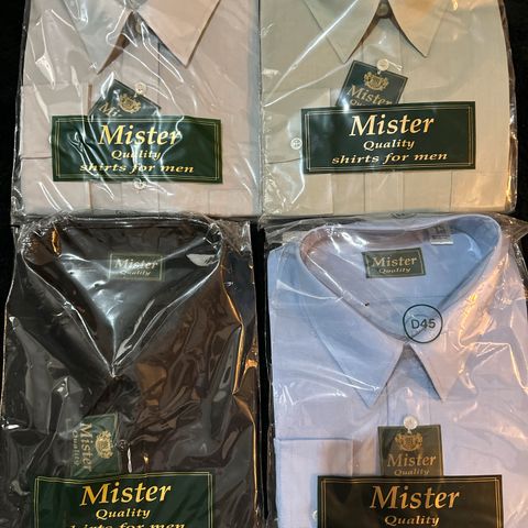 Myydään miesten uusia paketissa olevia kauluspaitoja.