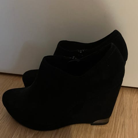 Myynnissä tyylikkäät mustat Fuzz -merkkiset korkokengät. Pintakangas mokkaa. Korko 8 cm.