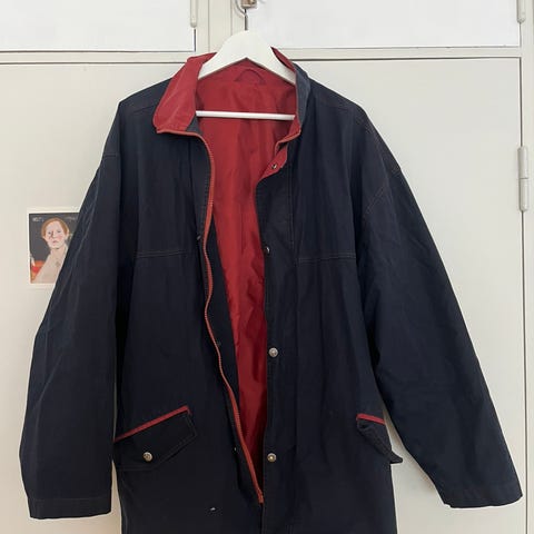 Elämää nähnyt ja kunnoltaan sen mukainen vintage-takki. Kaulukseen sisään kiinnitettävä huppu mukana, mutta vaatii uudelleenkiinnityksen. Helma lyhennetty siististi käsin ompelemalla (ks. lisäkuva). Kankaassa jokunen pieni reikä (en saanut kunnollista kuvaa) sekä värien epätasaisuutta/ pinttymää etenkin vuoressa.