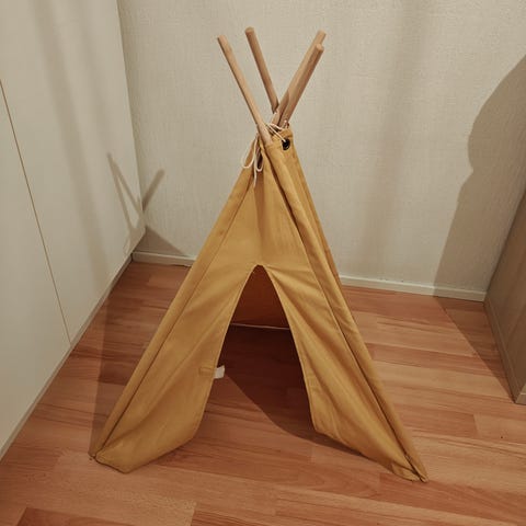 Hyväkuntoinen lasten kangasteltta sisäkäyttöön.