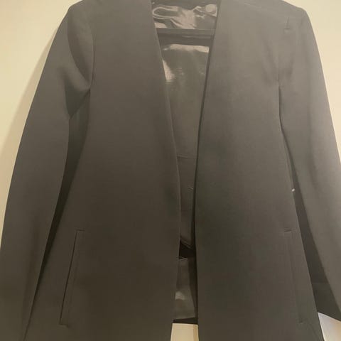Myydään Zaran tyylikäs, musta jakku. Kiinnitys vetoketjulla. Kaula-aukko avoin. Jättää olkapäät näkyviin.