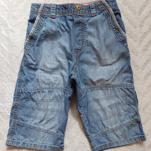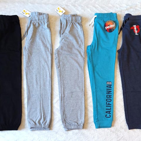 Poikien uudet Peuhu joustofarkut ovat kokoa 128 ja niissä on farkkujen ulkonäkö ja neuloksen mukavuus. Joustavissa farkuissa on etu- ja takataskut. Sini-valkoraitainen Vendi t-paita on uusi ja kokoa 130.