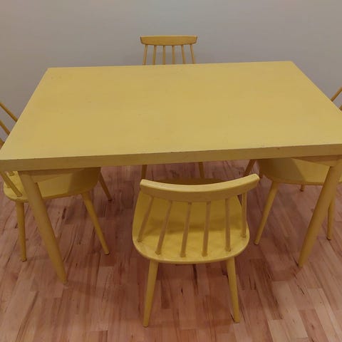 Ruokapöytä ja pinnatuoleja