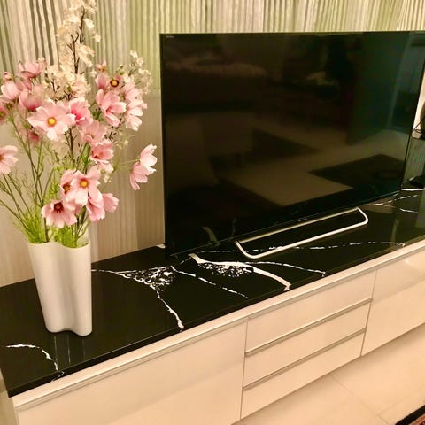 Tämä laadukas Wayon- kvartskivimateriaali soveltuu hyvin moniin käyttökohteisiin: keittiöön, kylppäriin, ruokapöydän upeaksi kansitasoksi, lipastojen päälle, toimistoon, terassille, parvekkeelle, yöpöydän kansitasoiksi, ikkunapeneiksi, puutarhaan.. mihin vain haluatkaan loihtia kontrastia mustan ja valkoisen kanssa.