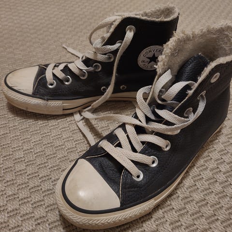 Valkoiset Converse All Starit myynnissä. Koko 4 joka taitaa vastata eu kokoa 36,5. Sisämitta noin 23cm. Käytönjäljet näkyvät kuvissa.