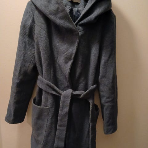Musta Bikbok x Mary Kate Olsen & Ashley Olsen villakangastakki. Hihoissa kultaiset vetoketjut, edessä nepparikiinnitys ja sivuilla taskut. Vyötäröllä oleva vetoketju aukeaa kokonaan, jolloin takista saa myös lyhyemmän version. Vetoketjusta vähän väri kulunut, muuten siistissä kunnossa. 60% villaa.