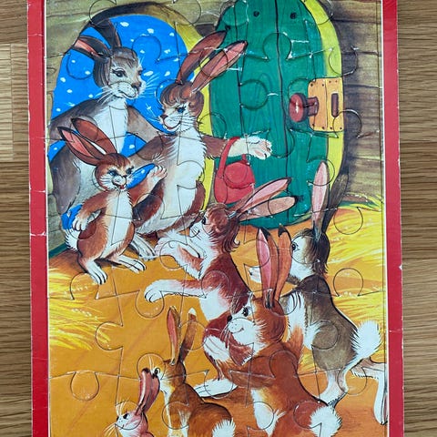 Puput puinen palapeli 1990-luvulta, 9 palaa, ikäsuositus 2-5 v