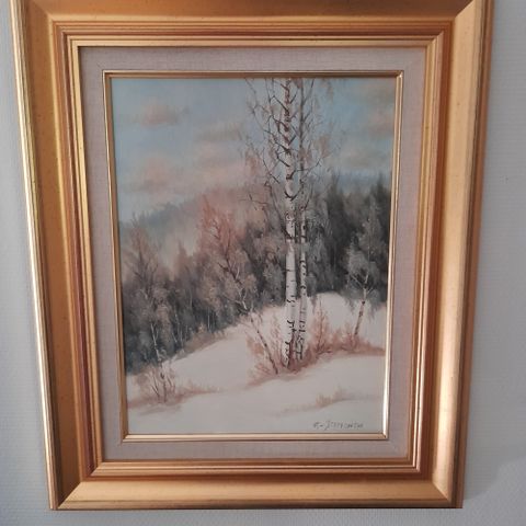 Öljyvärimaalaus 72 x 63 kankaalle. Taiteilijan signeeraus.