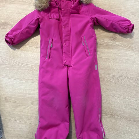 Sininen Reima Stavanger toppahaalari. Koko 104, reilu koko. Pepussa, polvissa, lahkeiden sisäsaumoissa ja napeissa vähän käytön jälkeä, mutta yleisilmeeltään siisti, ei kulahtanut. Pitänyt lapsen kuivana ja lämpimänä. Pepussa vain hieman pehmentymää, polvissa pikkuisen enemmän. Toisessa polvessa kuluma, mutta ei vielä reikä (kuva).