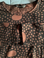 MArimekon hyväkuntoinen pallopaita, mustalla pohjalla ruskeita palloja, kokoa L.