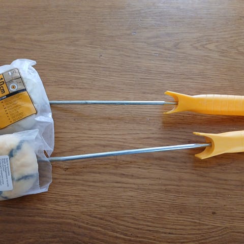 Kaksi rullaaa,kahvapidike ja maaliastia. Tällä maalaa ison pläntin sutjakkaasti!