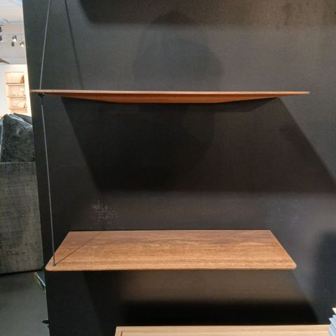 Leonard Aldenhoffin suunnittelema Stedge -seinähyllykkö luo visuaalisen illuusion hyllyistä, jotka näyttävät nojaavan seinään ainoastaan yksittäisen metallilangan varassa.