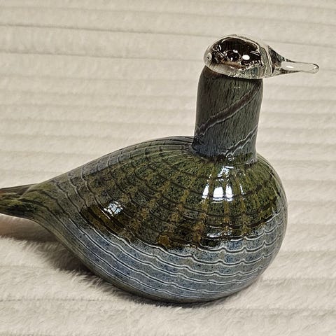 Kaunis lasilintu Nuutajärven valmistama ja Oiva Toikka suunnitellut