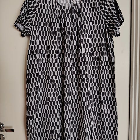 Marimekon trikoomekko, ei rypisty. Koko XXL. Raikas linssi on malli. Vyötäröllä kuminauha.