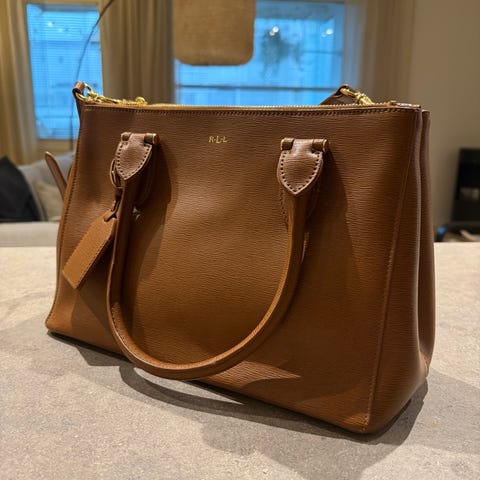Uudenveroinen valkoinen nahkainen Lauren by Ralph Lauren käsilaukku ja dustbag. Ei käytönjälkiä. Koko 33x 24 x 9.
