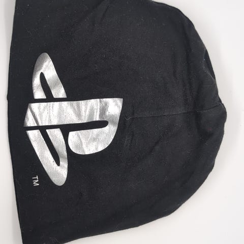 Pleikka-aiheinen pipo hopeanvärisellä painatuksella. Kunto siisti, hitunen käytön jälkeä painatuksen reunaosissa.