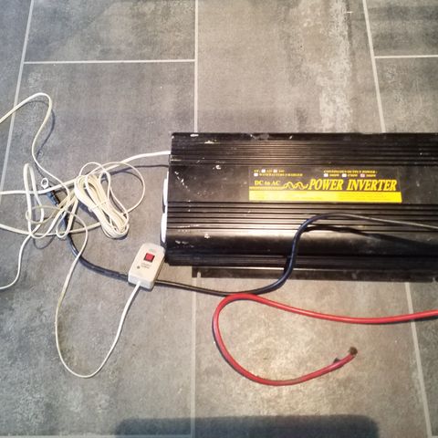 Tehokas kuorma-auton invertteri. Käytetty todella vähän. Mukaan tulee noin 5m pitkä paksu virtakaapeli, sulakerasia ja käyttöohjeet. 1200 watt 24 volt.