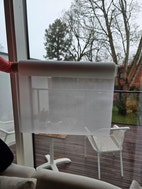 Paneeleiksi leikatut läpikuultavat auringonsuojakankaat sisätiloihin, esim. lasitetulle terassille.