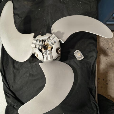 Potkurin lavat vaihtuivat isompiin ja R-kätiseksi (oikea) moottorin vaihtuessa Volvo Pentasta Yanmariin. Ei sisällä napaa, mutta lavat sopivat Flexofoldin napoihin joissa on kumiset ”iskunvaimentimet”. Napaa myydään erikseen.