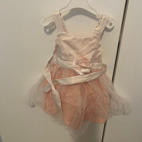 H&M vaaleanpunainen mekko 92. Meille uutena ostettu, kerran ehti päälle kesän lomareissulla ja sen jälkeen kertaalleen pesty. Vuori. Niskassa nappikiinnitys.