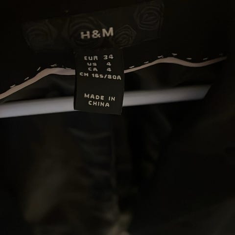 Koko 34, rinnanympärys 1/2 mitta (kainalo-kainalo) 43 cm; olka-helma pituus 50 cm.