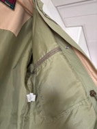 Salvianvihreä vintage-takki. Rento istuvuus, etupuolella vetoketju ja nepparinapitus sekä 4 vetoketjullista taskua. Lisäksi siäpuolella 1 vetoketjullinen tasku. Vyötäröllä ja helmassa säädettävät kiristysnauhat. Ohut vuori, sopii hyvin välikausiin. Kauluksessa nepparit mutta huppua ei ole mukana.