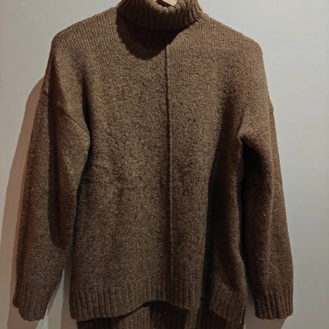 Myydään neulepaita. Kaulassa on jotain kirjaimia