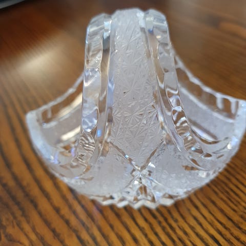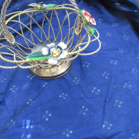 Metallinen, ehjä tarjoiluastia "karkkikippo". Muovinen punottu kahva. Pituus 17 cm, leveys 6,5 cm, korkeus 8 cm. Kunto erittäin hyvä.