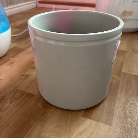 Myydään keraaminen vaaleanpuna-kultainen ruukku/maljakko.