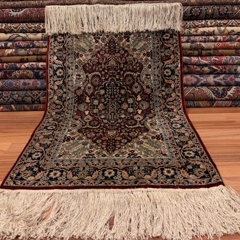 Käsin solmittu intialainen silkkimatto. Tämä on hyvin erityinen silkki, matto on niin hienoa, että se on melkein kuin paperia. Lisäksi matto on täydellinen, aivan kuin se olisi vasta solmittu. Maton hapsut ja loimi ovat silkkiä. puhdas silkkimatto.