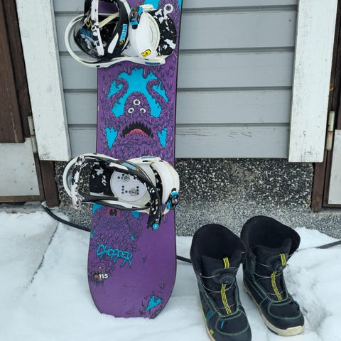 Burton 115cm lumilauta ja burton stiletto smalls siteet.