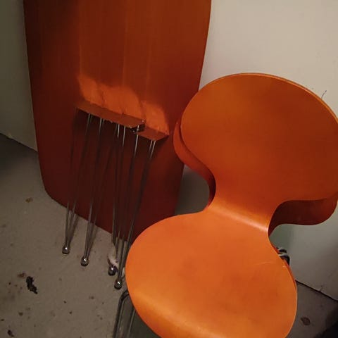 tuolien istuinosan kankaan väri on vihreä, kaikissa kangas on ehjä, kuvissa punaiset irrotettavat istuinpehmusteet (eivät kuuluu kauppaan)