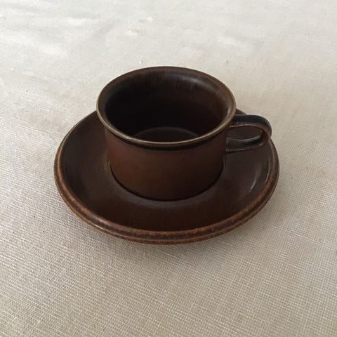 Myydään Ulla Procopén suunnittelema Ruska astiaston kahvikupit 2kpl. Valmistaja Arabia. Halkaisija 8cm.