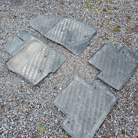 Kaksi takakontin kumikaukalomattoa, toinen oli muistaakseni Volvo v70 malliin ja toinen saattaa olla Toyotan farkkuun... ?