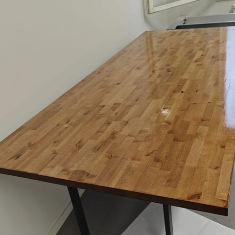 Uusiokäytetystä puusta valmistettu pöytälevy antaa vakaan ja turvallisen tilan
