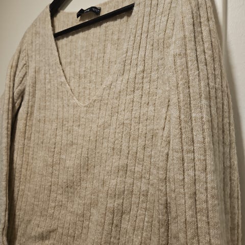 Kuvan mukainen tummansininen neule. Jonkin verran on nukka.
