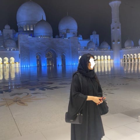 Aluhuivi ja sininen hijab kuluneempia, molemmat puuvillaa. Yhdessä 6e