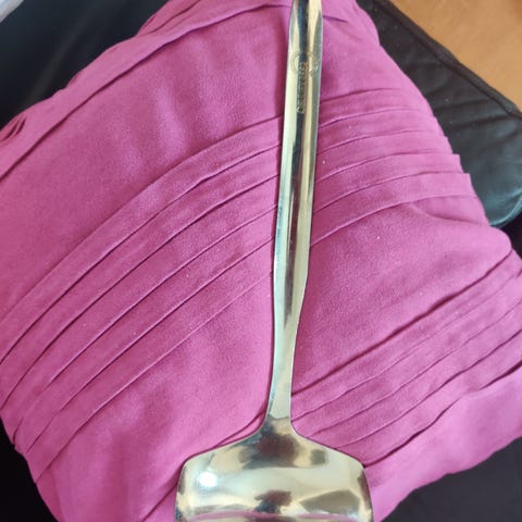 Kultakeskuksen keittokauha. Pituus noin 25 cm.