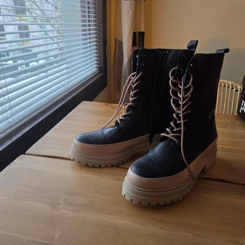 Andiamo merkkiset nahkaiset naisten maiharit koko 38. Käytännöllinen korkea varsi, vetoketju, hyvä lesti. Edullisesti uudet kengät pitkäksi aikaa. Todella hyvä pitävä pohja. Kapeahko lesti.