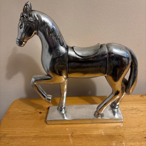 Siisti ja ehjä keinuhevonen sisustukseen. Toiminut koristeena, ei ollut lasten leikeissä. Korkeus 23 cm, pituus 28 cm ja leveys 6 cm. Ei ToriDiiliä. Nouto 40700 JKL tai postitus. MobilePay, käteinen tai tilisiirto.